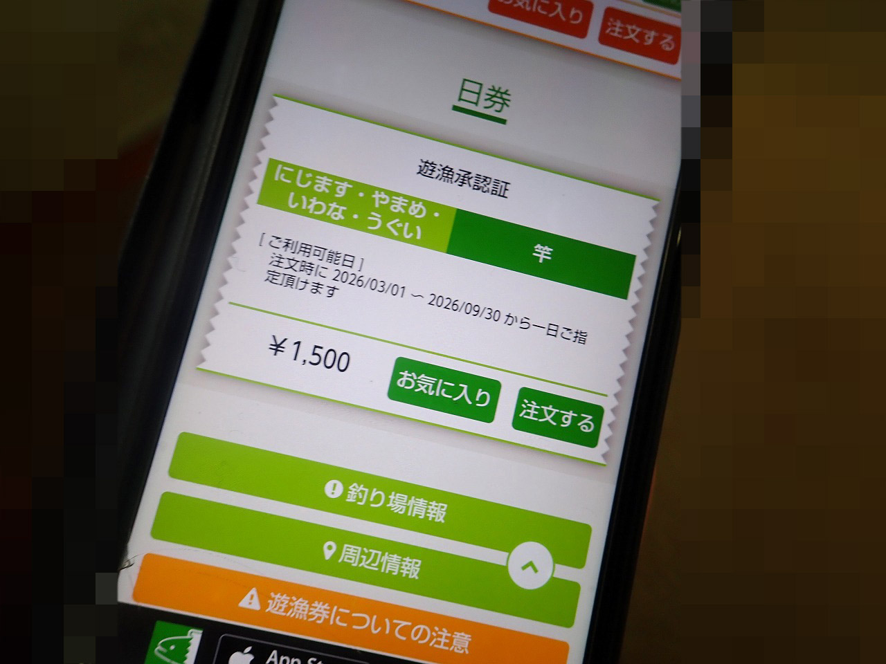 今回はスマホで日釣り券の購入手続きを行いました