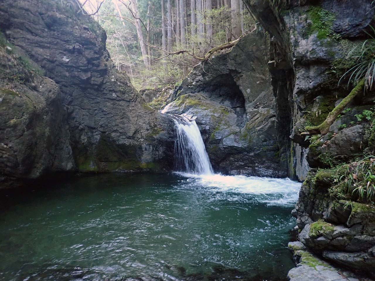 この日は結果、雨降滝から下流側の釣り堀まで歩き、そこから公道に出て戻りましたが、道中はそれなりの沢歩きとなる旨、ご留意を。
