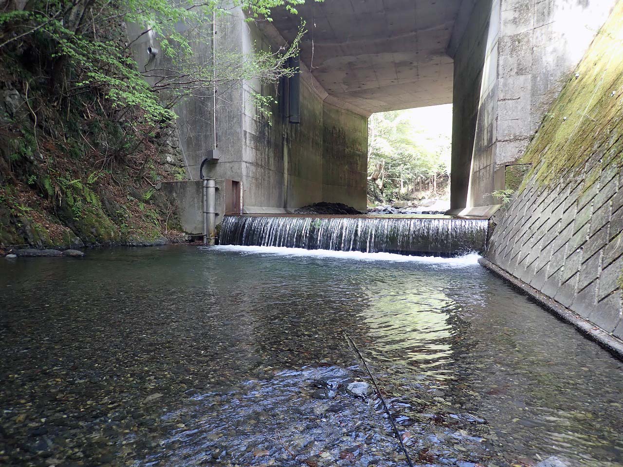 橋の真下の様子。ここでもキャッチサイズのニジマスが出ました